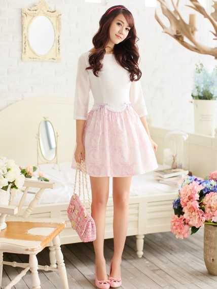 春季粉紫色高腰连衣裙,是矮个子MM们必备的时尚单品。