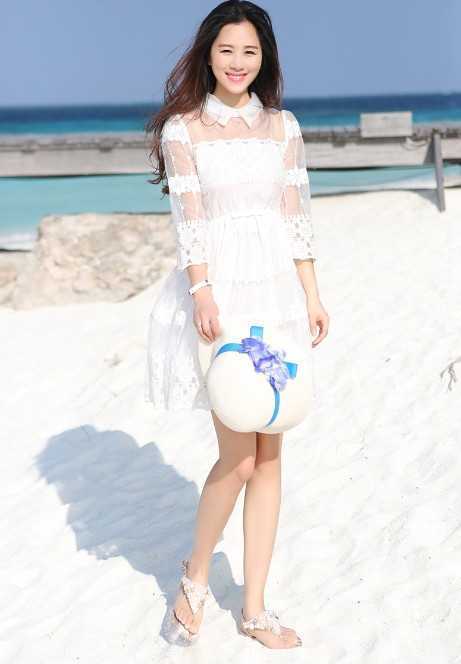 春季钉珠高腰连衣裙,仙美的白色穿着很显公主范,搭配清新白色鞋子,清爽又显时尚,完美打造出仙美公主范儿。