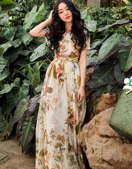 春季印花飘逸连衣裙,复古韵味的印花点缀着,很时尚大气,很适合高个子MM穿着。