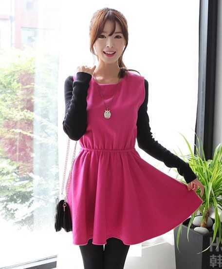 春季玫红色连衣裙,收腰的设计,完美凸显出腰身曲线美,是2014年春季大热款连衣裙喔。