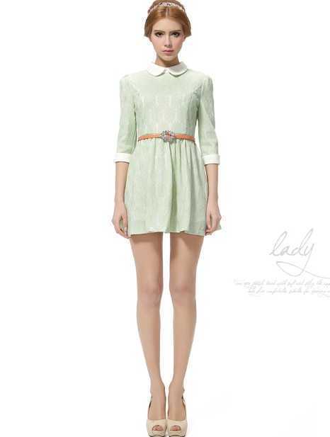 背面看春季薄荷绿连衣裙,修身又显瘦呢!