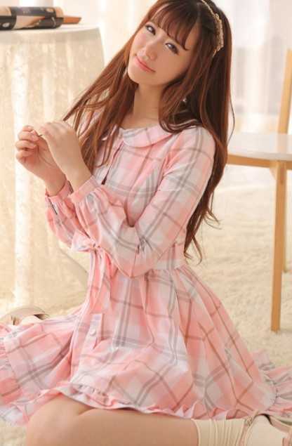 学院风春季棉质高腰连衣裙,粉嫩的颜色很养眼,搭配淑女粉色鞋子,尽展甜美淑女范儿。