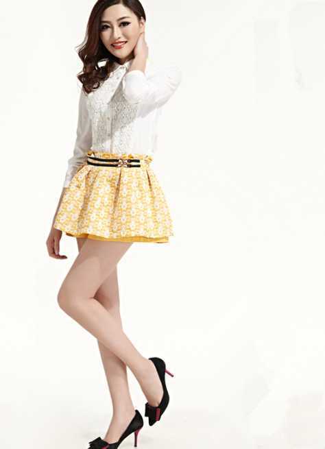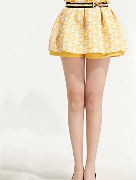 春夏姜黄色裙裤,精美白色碎花点缀很清新好看,还很显高喔。