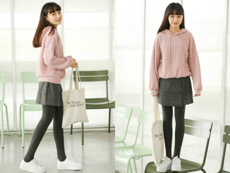 这件卫衣款式简约大方,粉嫩的颜色看起来萌萌哒,下身搭配一条深灰色的直筒半身裙,瞬间遮住大腿,里面再配一条同色系的打底裤,保暖之余也把腿型拉长,脚上搭配一双流行的小白鞋,整个look可爱得来又清新,让人看了觉得很舒服。