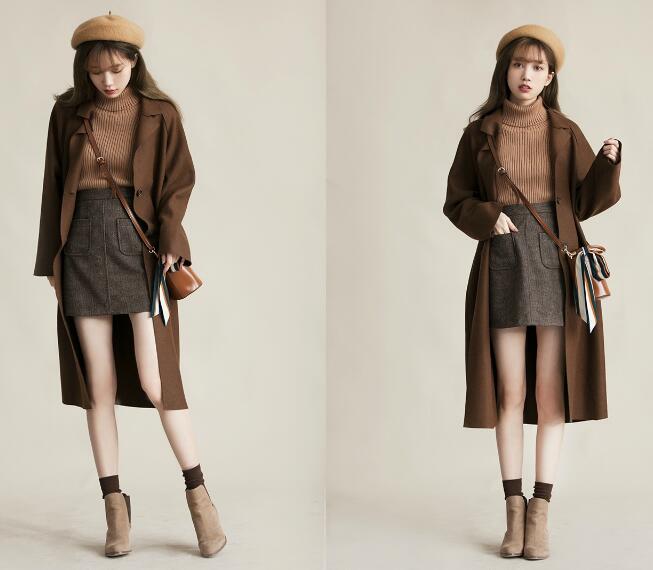 除了选择短外套来拉高腰线,把毛衣扎进裙子里也一样是拉高腰线的好方法,很好的分割出大长腿的比例,下身穿上一条A字小短裙,外搭一件长款大衣,有层次的搭配也让大长腿的视觉效果更佳,如此时尚又显高的搭配小个子女生可得get起来。