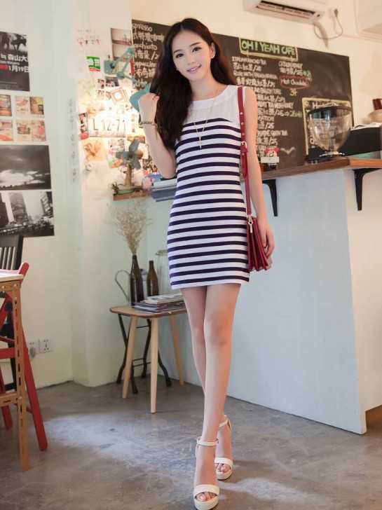 条纹裙一直都是显瘦效果很好的单品,视觉上的修身,高挑一点的妹纸穿会更加好看哦!简单搭配一双平底鞋或者高跟鞋都会有不错的效果,而且显得特别的淑女~你也赶快尝试一下吧~
