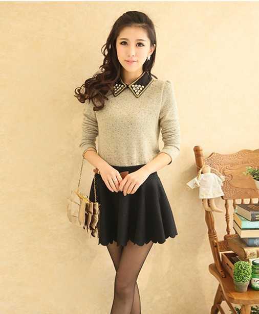 春光洋溢着冬天季节,想让微胖的自己变换成小清新模样,一款修身针织衫贴心又温暖华丽丽的呈现。奢华镶钻的针织衫搭配宽松型黑色小短裙,加上甜美蝴蝶结,藏住你微微凸起的小肚子,黑色修腿型的丝袜配上性感黑色尖跟高跟鞋,如此的搭配超显高显瘦的,脱掉臃肿重回美丽的装扮。