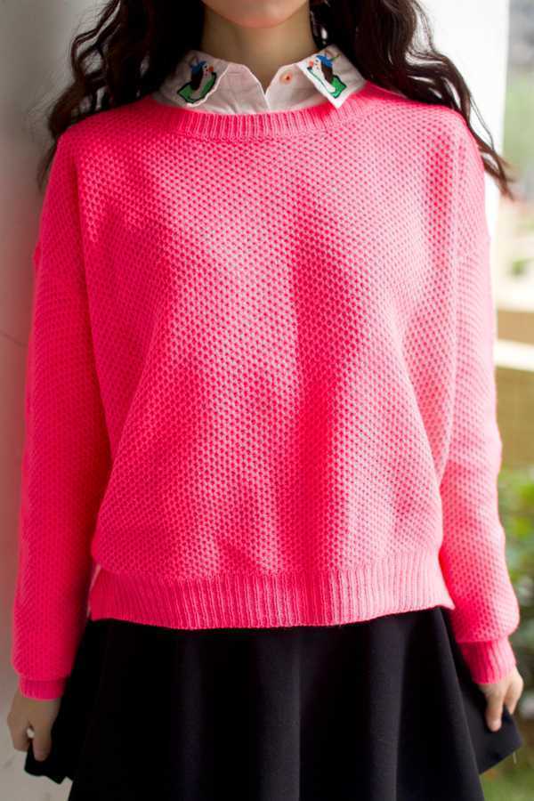 糖果色玫红色宽松版毛衣