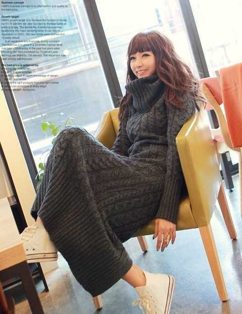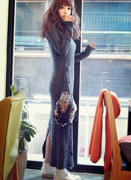 长款的韩版针织连衣裙,腿粗MM完全不用惧怕,长款的款式完全遮住了肉肉的粗腿,让你穿起高挑身姿之余还很时尚温暖呢,随性搭配一对自己喜欢的鞋子都很美很靓丽了。