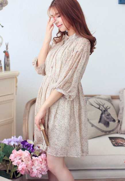 春季米白色灯笼袖连衣裙,碎花点缀充满了清新田园风,随意搭配纯色单鞋或高跟鞋,都很显甜美时尚感呢!