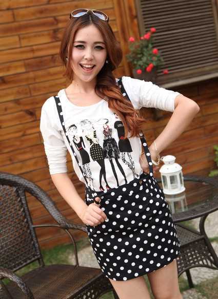 韩版黑色波点包臀背带裙,是减龄必备的单品,搭配简约白色印花衫,很清爽迷人,搭配黄色舒适高跟鞋,完美秀出高挑身材,很显瘦显高,随手拎着姜黄色时尚包包,瞬间美爆了。