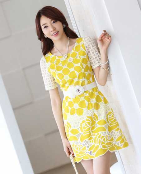 夏季蕾丝连衣裙,靓丽色彩衬出白皙好肤色,让微胖MM穿出显瘦又时尚装扮。