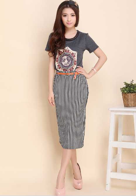 夏季高腰条纹半身裙,完美秀出纤细好身材。