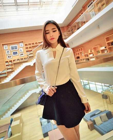 简单的搭配给人一种优雅气质美,高腰牛仔短裙是显高最佳法宝。