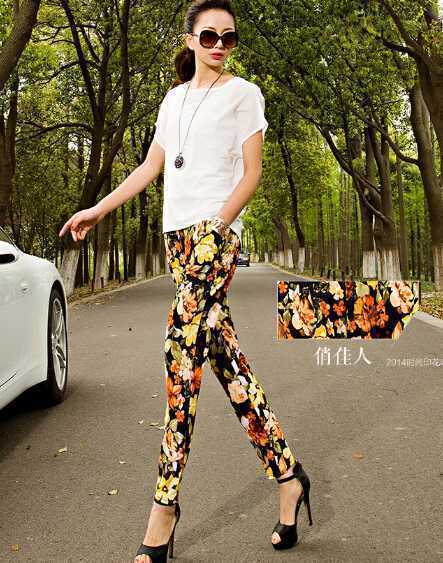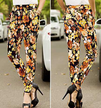 花朵夏季哈伦裤,绽放出夏天阳光般色彩,宽松的款型巧妙遮住 不完美的腿型,搭配纯白色雪纺衫,清凉更优雅。