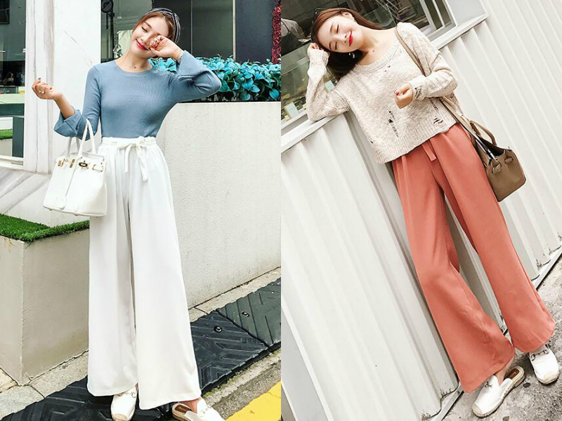 阔脚裤绝对是遮肉显腿瘦的完美利器,修长自然垂顺的阔脚裤,遮肉的同时打造出完美的腿部线条,大长腿既视感,加上高腰的设计,再露出纤细的脚踝,视觉上更加显瘦显高。