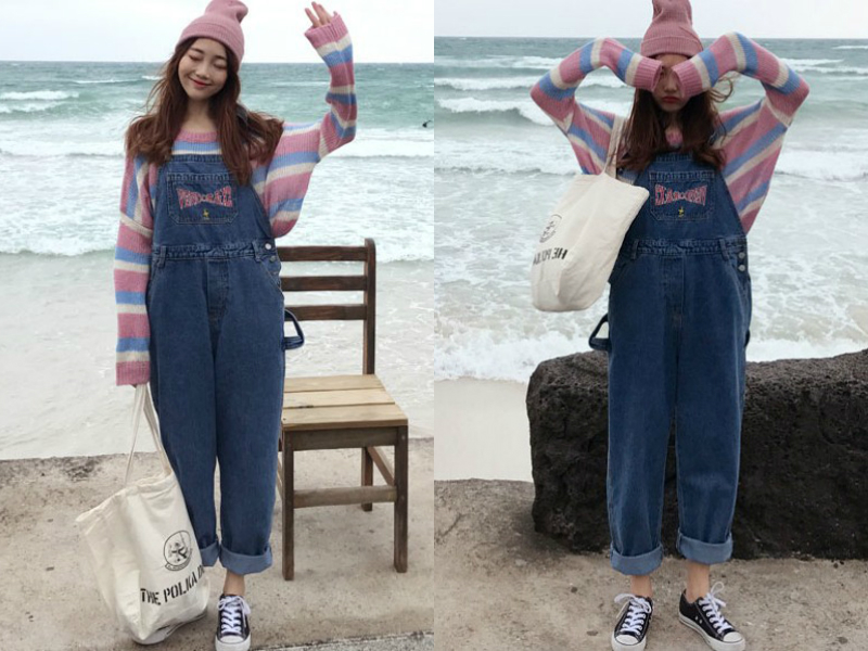 流行的牛仔裤腿粗的女生也是可以穿的,选择没有弹力宽松的牛仔裤就行了,这条连体牛仔裤宽松的版型,即使臀部和腿粗的女生都可以驾驭得了,而且穿起来还很活泼有朝气。