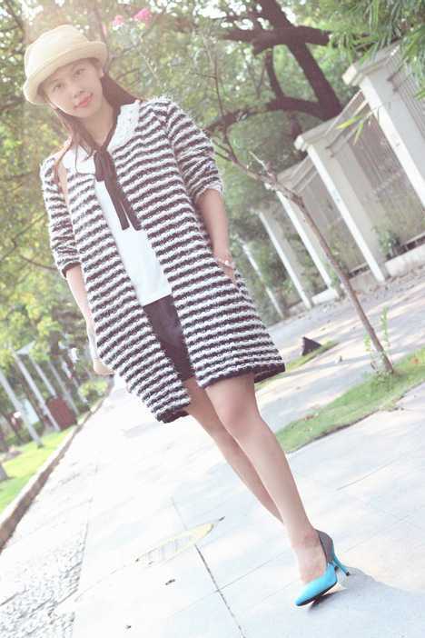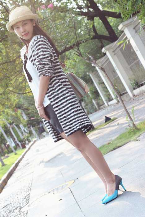 个性独特的拼色磨砂高跟鞋,穿上去很贴脚舒适。百搭又时尚的针织中长款外套,软绵绵的手感,让你穿起来很舒服,内搭纯白色学院风的衬衫,下身搭配经典黑色短裤,穿出很清纯优雅的学院风,上学一族的妹子们不妨试试喔!