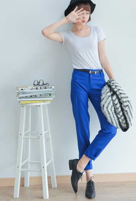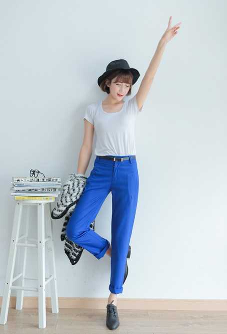 宝蓝色裤子搭配小清新鞋子巧妙搭配,谱出属于你的精彩。