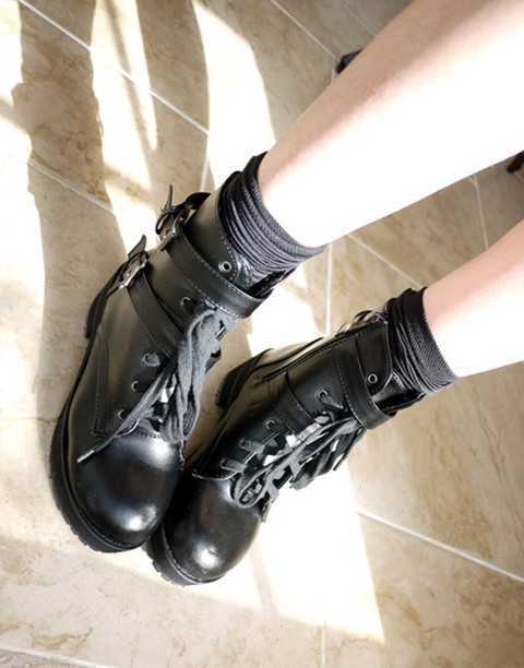 超有时尚设计感的黑色马丁靴,两个超亮点的皮扣设计,穿出潮流时尚感,经典的绑带款式的靴子,搭配同色系的袜子,很时尚有潮气的穿法,轻松让你在冬日洒脱靓丽外出。