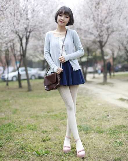 粉嫩的春季厚底粗跟鞋,很显甜美淑女气质,搭配灰蓝色针织衫,很清新可人,搭配蓝色百褶短裙,尽展出小巧可爱淑女范儿。