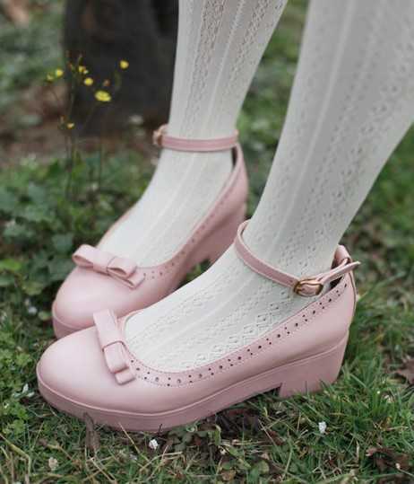 春季粉色厚底粗跟鞋,甜美蝴蝶结点缀着,穿出甜美淑女气质。