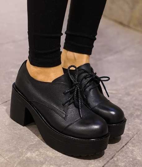 春季黑色厚底粗跟鞋,高品质真皮材质,让你穿出高档大气的装扮。