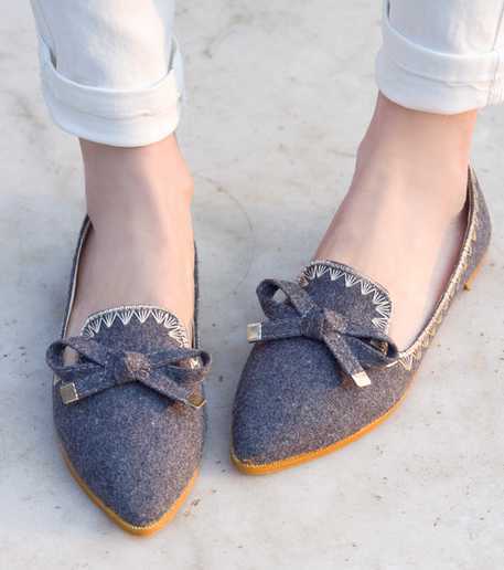 深灰色蝴蝶结平底鞋