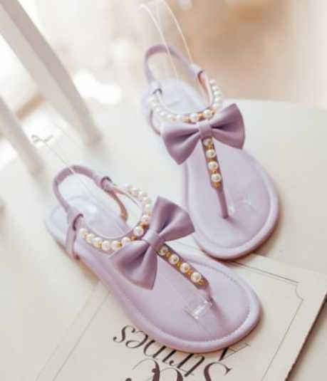 韩版蝴蝶结夹脚凉鞋,高档珍珠点缀,彰显高品质。