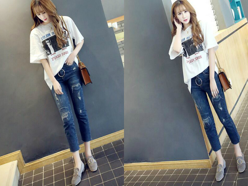 03短袖T恤衫+牛仔裤+方扣单鞋