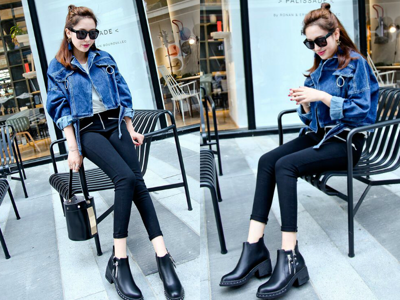 搭配1:牛仔外套+英伦风女靴