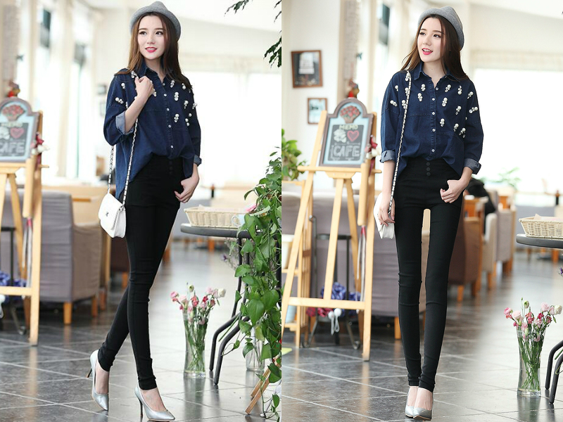 时尚百搭的银色高跟鞋,无论搭配什么裤子都能驾驭得了,搭配一条高腰的小脚裤,轻松拉长比例穿出曼妙的身材,高腰小脚裤修身的版型,贴合女性身体曲线,在高跟鞋的加持下,身材显得更加挺拔迷人。
