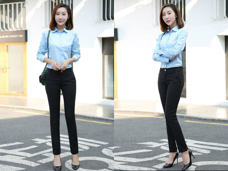 经典时尚的黑色高跟鞋,唤醒女性的优雅气质,随意切换任何场合,搭配一条时尚休闲西裤,随意休闲又有气质,休闲西裤小脚立体版型营造出瘦身的效果,在高跟鞋的衬托下,穿出了女性从容自信的气场。