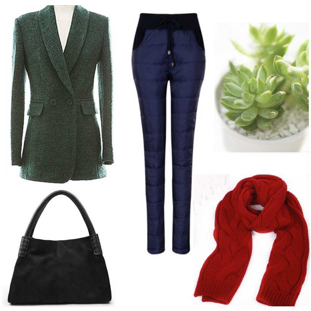 悠悠清新感的墨绿色大衣,搭配保暖十足的羽绒裤子,很率性通勤,围上一条很复古的红色围巾,为装扮增添不少的优雅气质,随手拎起一个真皮黑色包包,轻轻松松让你成为干练成熟的时代女性,美丽而不俗气。