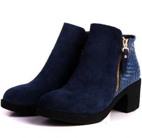 帅气的深蓝色靴子,与深蓝色毛呢外套相搭配,很好看高雅,如此巧妙的搭配想让你不炫丽都不行呢!