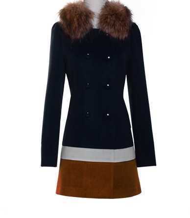 深蓝色毛呢外套