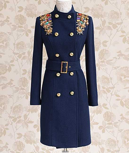 霸气外露的藏青色毛呢外套,永不过时的经典双排扣设计,奢华的贴钻装饰让整件衣服提升一个level,很百搭的藏青色外套,随意混搭帅气修身的皮裤和超高跟的绒面靴子,尽显淡雅高贵。