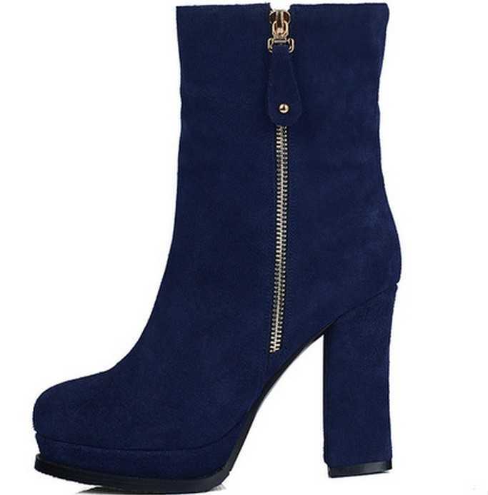 超高的粗跟,很显高显瘦,时尚个性的侧拉链设计,尽显时尚的潮气。上身搭配天蓝色毛呢连衣裙,很温婉清新脱俗简单的装扮,轻易让你穿起优雅的女性美。