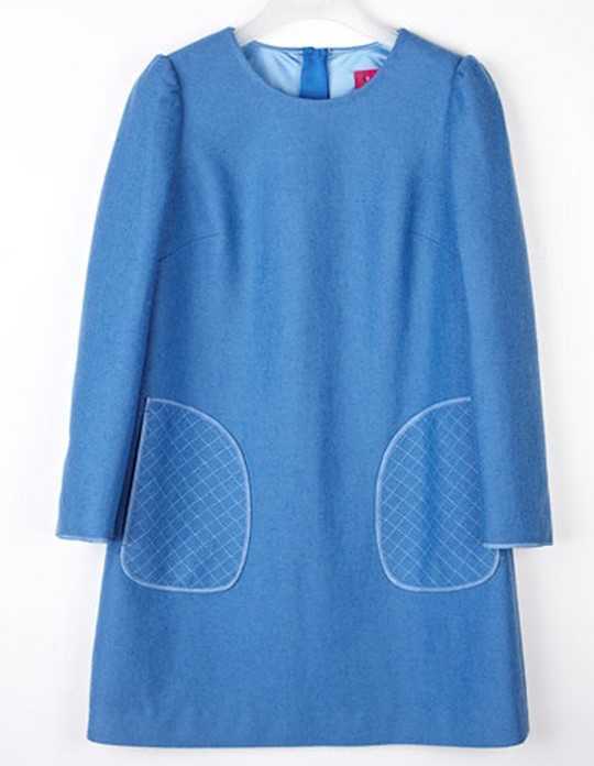 优雅的天蓝色气质型毛呢连衣裙,独特有个性的大口袋设计,散发出优雅温婉气质气息,搭配同色系的高跟靴子很百搭好看。