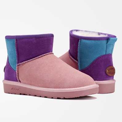 大胆的撞色,色彩鲜艳让人体现出色彩缤纷的视觉感受,粉嫩粉嫩的雪地靴,穿出很可爱甜美格调,随意搭配打底裤,连衣裙,大衣都很百搭呢。
