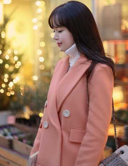 糖果色粉色毛呢大衣
