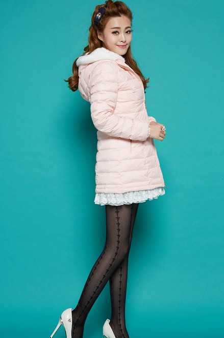 时尚粉色蕾丝羽绒服,小甜美感的蕾丝下摆,穿出独特小女人迷人气质,搭配超性感的黑丝袜和狠高跟优雅鞋子,性感与甜美倍增的冬日装扮你也可以拥有!