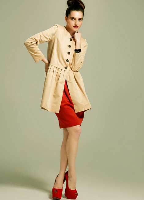 娃娃款的下摆米色风衣,独特的排扣,穿搭起来非常时尚大方,内搭抢眼迷人红色连衣裙,尽显女性迷人诱惑,加上高贵奢华的红色高跟鞋,百变穿搭完美展现出时尚都市女性风范!
