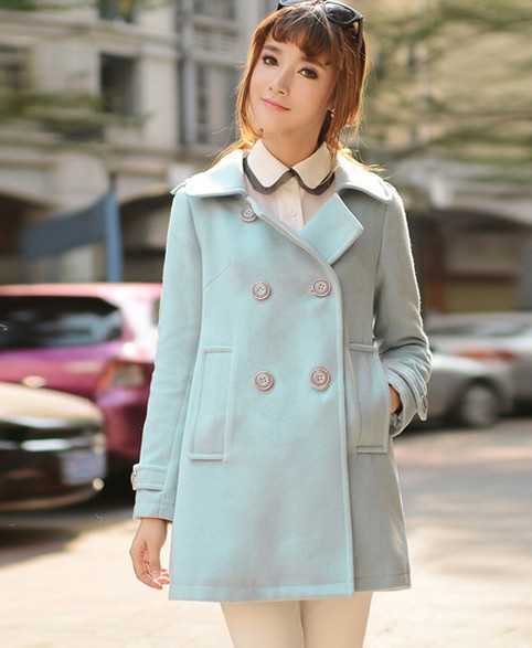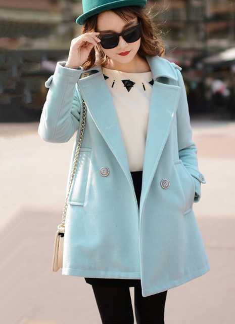 经典的双排扣设计,依然是最受时尚界喜欢的,嫩蓝色毛呢外套,时尚又清新,内搭简约的立体领白色衬衫,下身搭配纯白色打底裤,显得清新靓丽过人,让你轻松暖洋洋过新年。