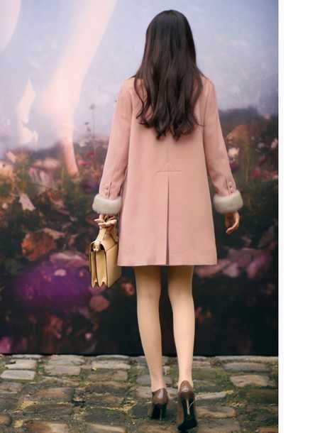 简约大气款式,轻奢华绒毛点缀,穿出低调又不失奢华感,搭配甜美小公主范粉色平底鞋,散发出优雅甜美感小公主范儿,随手拎起淡黄色小包包,时尚又洋气的冬装。