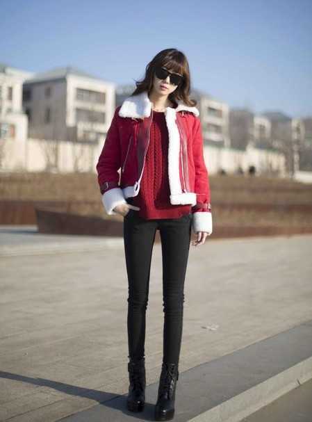 超赞的大红色,非常时尚好看,温暖倍增的羊羔毛棉衣,轻松让你温暖时尚过新年。