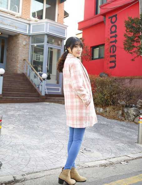 永不过时的粉红色格子毛呢大衣,搭配超亮眼的蓝色小窄裤,凸显出柔美纤细线条,穿出优雅名媛气质,时尚的驼色短靴,冬日随意搭配让你穿出靓丽时尚装扮。