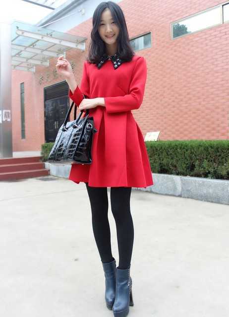 新年红连衣裙搭配短靴法,都学会了吗?赶紧在新年穿起来吧。