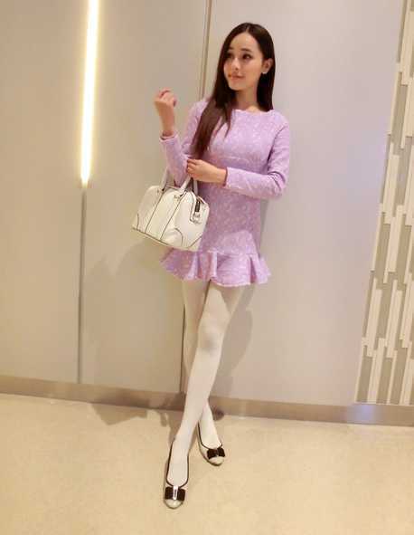 紫色总能给人一种浪漫迷人的感觉,提升个人优雅气质,糖果紫春季连衣裙,搭配纯白色打底裤,穿出粉嫩仙美感装扮,搭配小香风淑女鞋,更凸显时尚感。