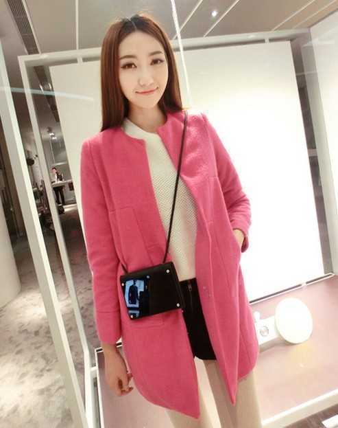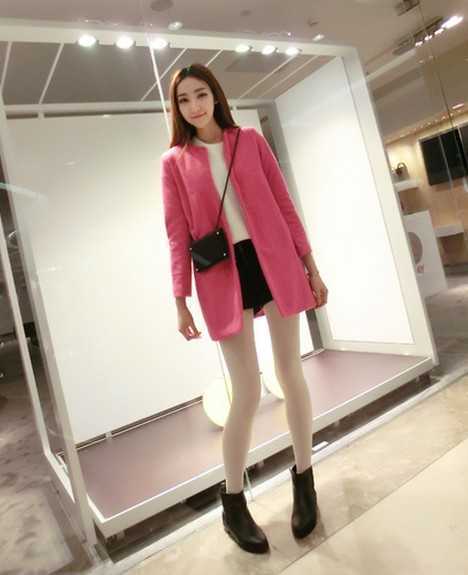 显气色的蜜桃粉毛呢大衣,轻松穿出时尚范儿。
